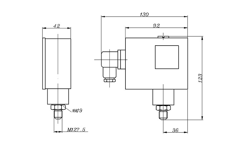 502/7DC(小型)壓力開(kāi)關(guān)外形尺寸及安裝尺寸(單位:mm)