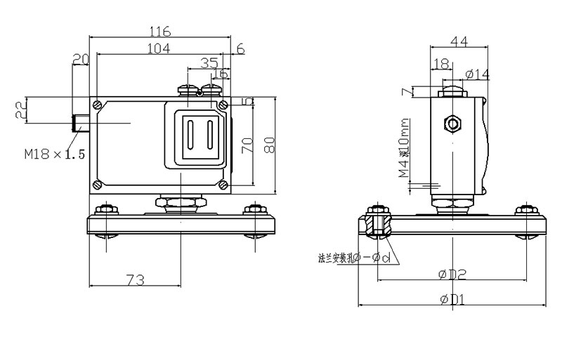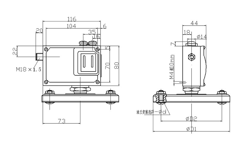 安裝(或拆卸)控制器時要特別注意:防止傳感器(法蘭盤)與開關殼體發(fā)生相對轉動。 若客戶對法蘭尺寸有特定要求,可協(xié)商定制。