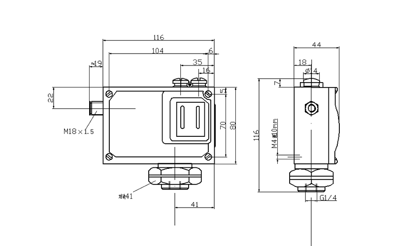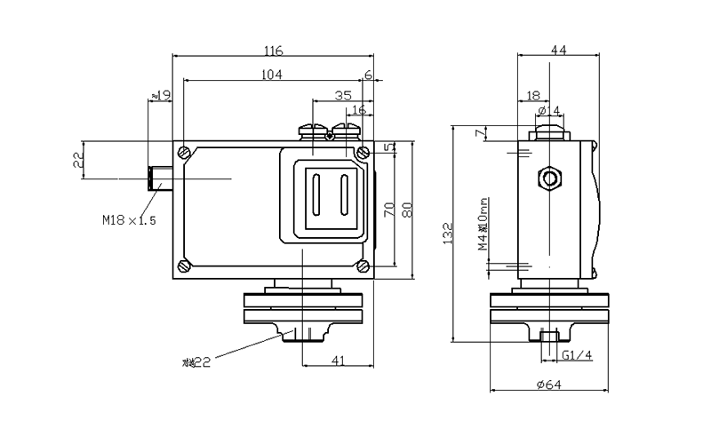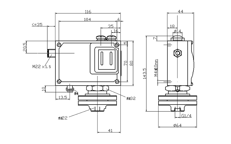 500/7D壓力開(kāi)關(guān)外形及安裝尺寸(單位:mm)